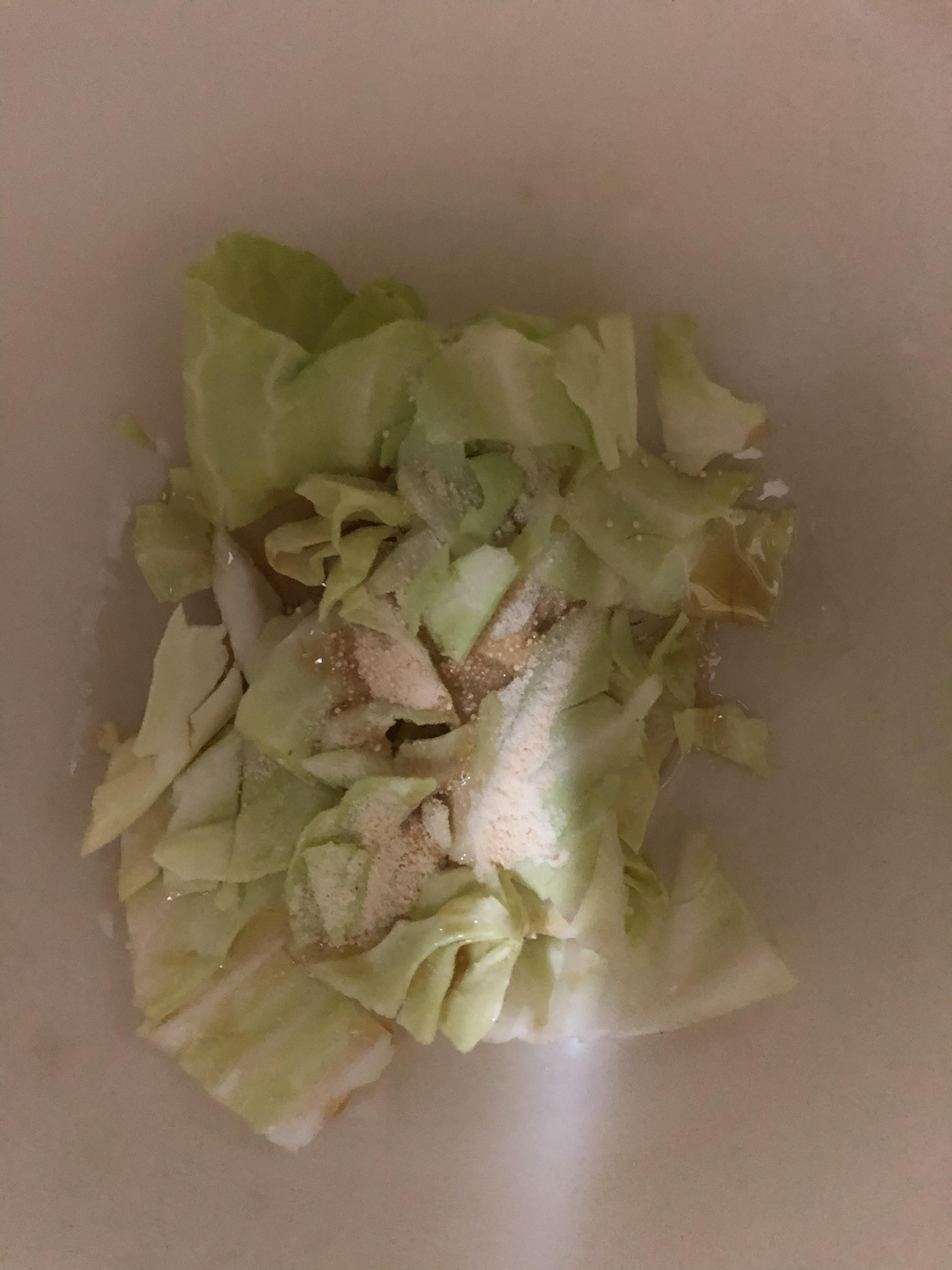 キャベツに鶏ガラ粉末とごま油を入れて混ぜたやつ