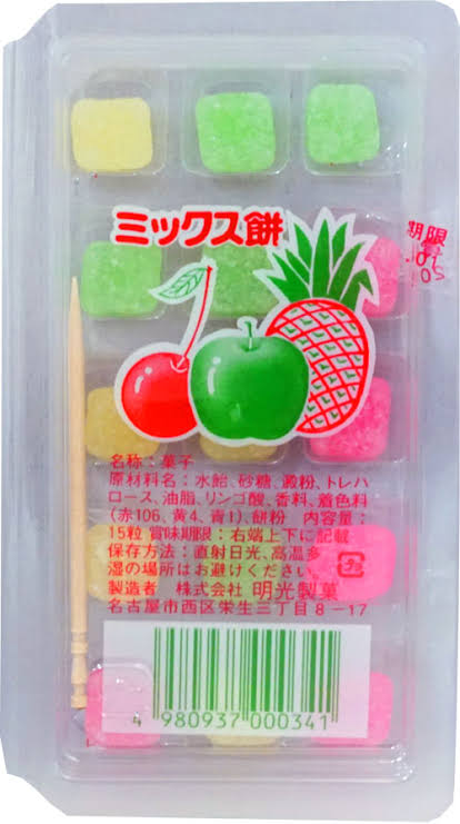 ピンクだか緑だかのタイルみたいな餅