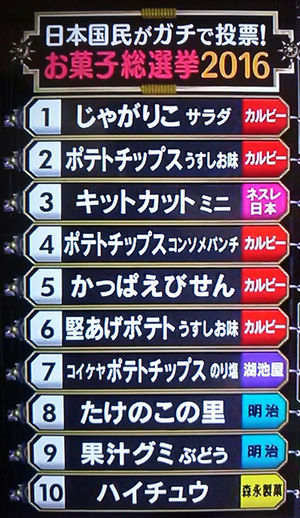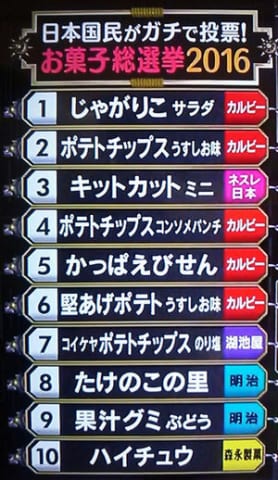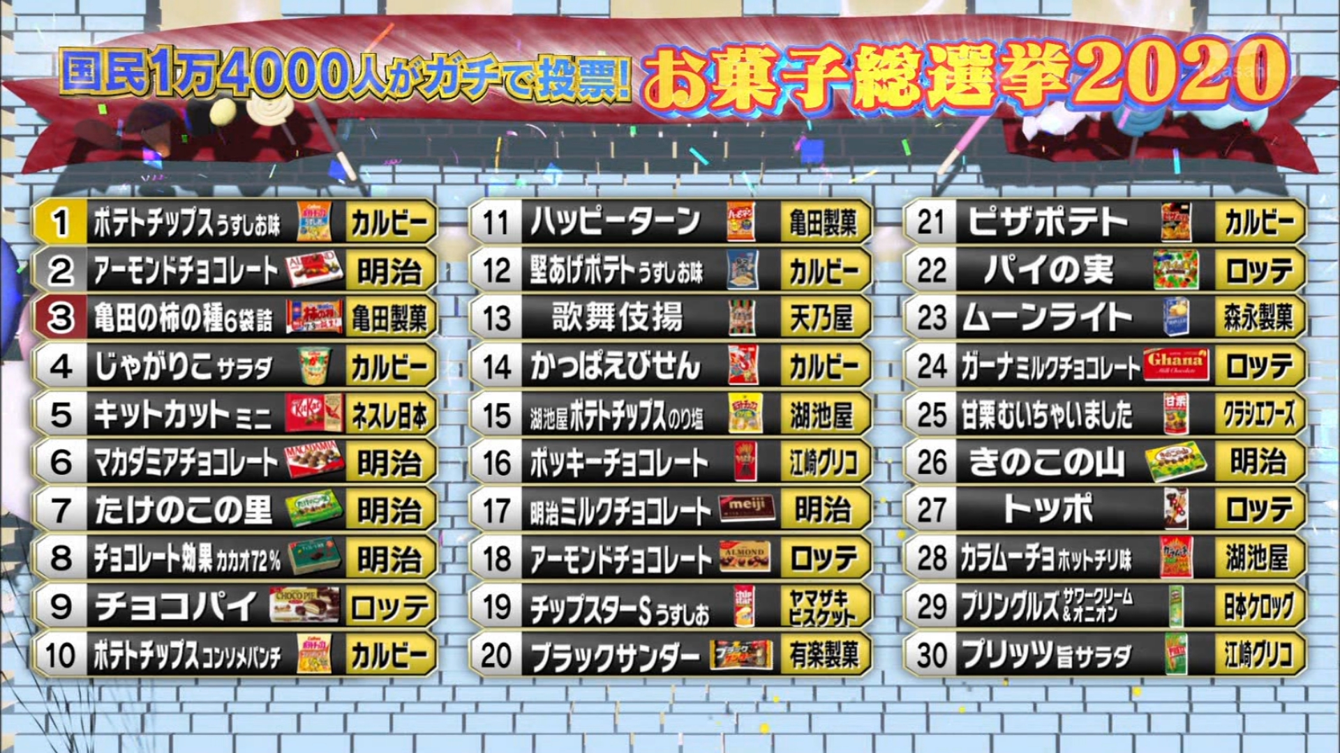 色々言うやつ多いのは分かるけど、この番組をきっかけに、いかにみんなどのお菓子が好きか盛り上がれるんだからいい話よな。