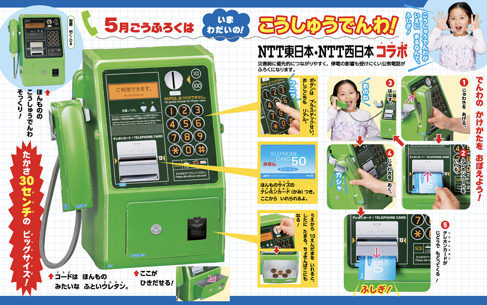 過去の付録抜粋 2020年5月号 「こうしゅうでんわ」 https://sho.jp/youchien/49347 2020年1月号 「ぎゅうどん づくりゲーム」 https://sho.jp/youchien/44711 2019年9月号 「セブン銀行ATM」 https://sho.jp/youchien/41798