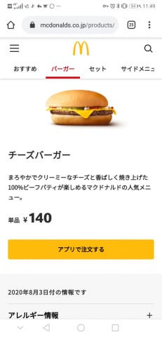 今チーズバーガーって140円もすんのかよwボリ過ぎやろw