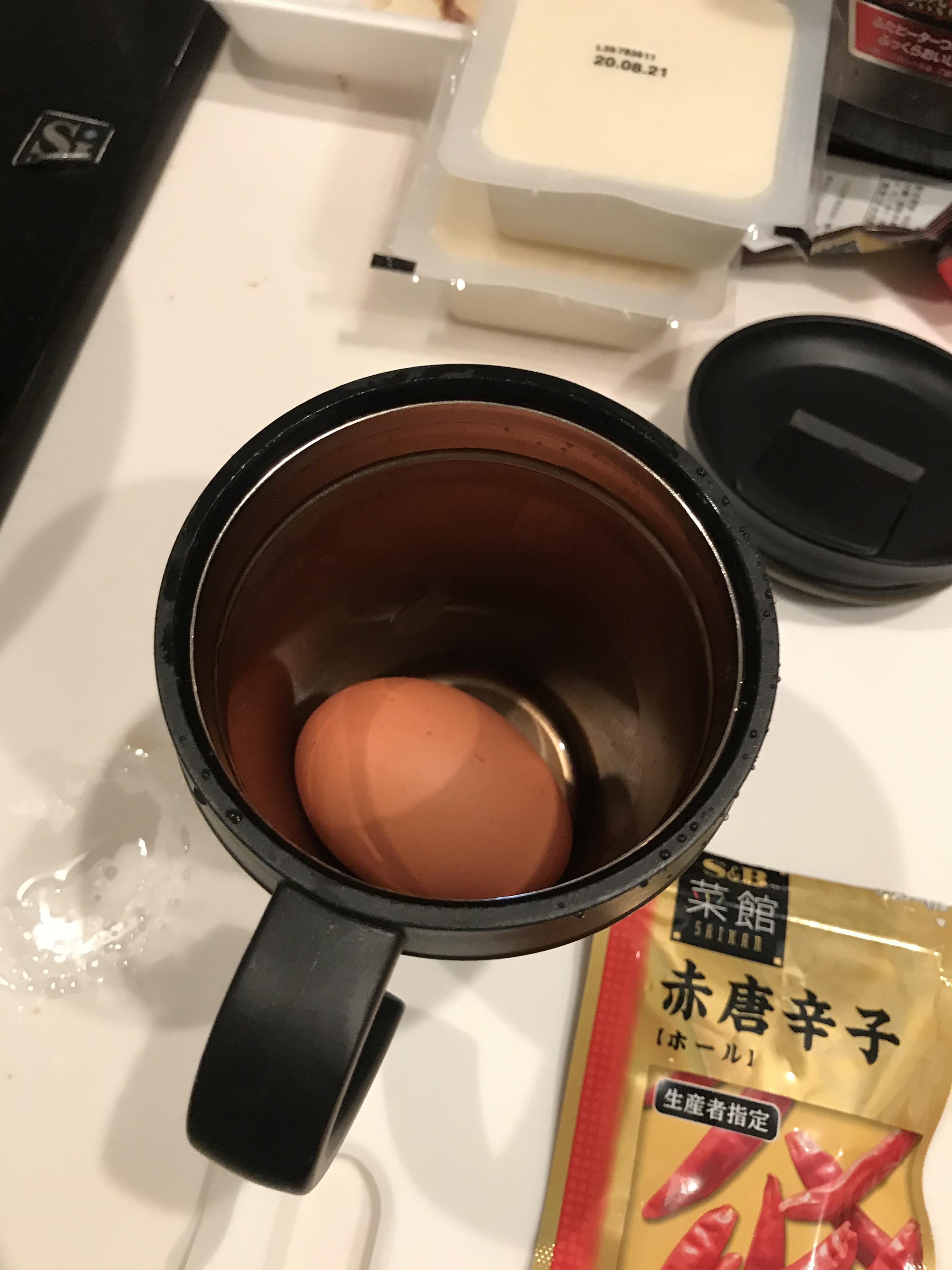 温玉500wでコップに玉子と同量の水いれて
