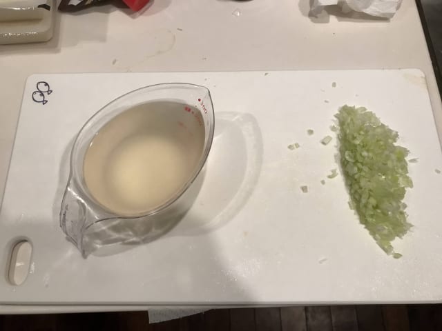 ステンレスボールに葱、生姜、ピーシェン豆板醤、豆豉、焼酎に浸した物を入れ、この5倍の量の190℃に熱した油を注いで撹拌したらラップをして放置→冷めたら完成。