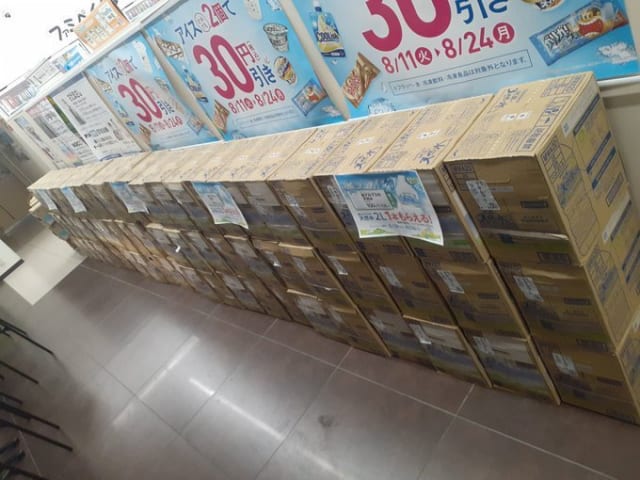 ワイの前に並んでたお客さんが水6本買って2リットルの水1箱もらって帰ってったで