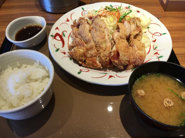 鳥の一枚揚げ定食みたいのがぐう美味かったわ