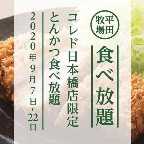 平田牧場は今回の食べ放題を「無限とんかつ祭」と題し、平田牧場三元豚ロースかつ、三元豚ヒレかつ、三元豚メンチかつが食べ放題となるプランを発表。
