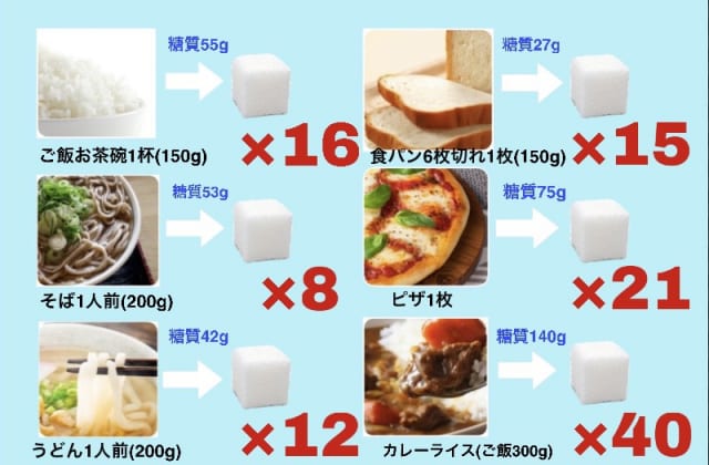 時間かけて吸収される多糖類をすぐ吸収される二糖類の砂糖で換算するのは違うだろ