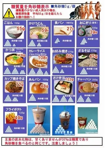 毎日、米やパンの代わりに、ここに書かれてる量の角砂糖食ったら