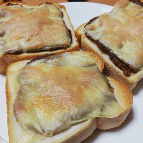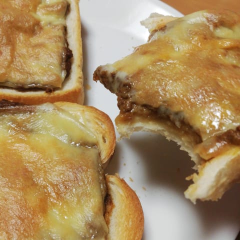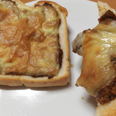 キーマカレー風な感じで作ったものにチーズを載せたのかな?