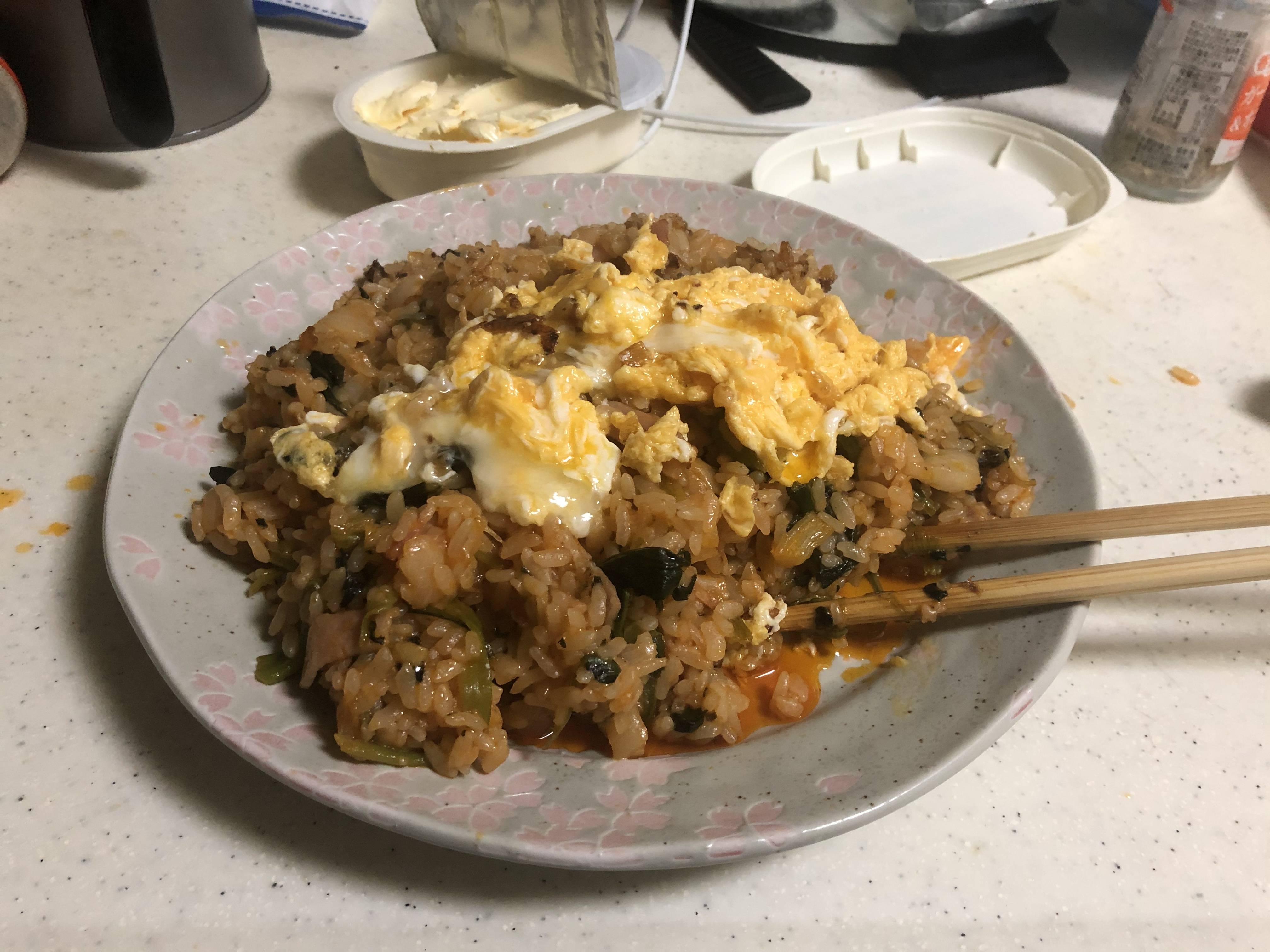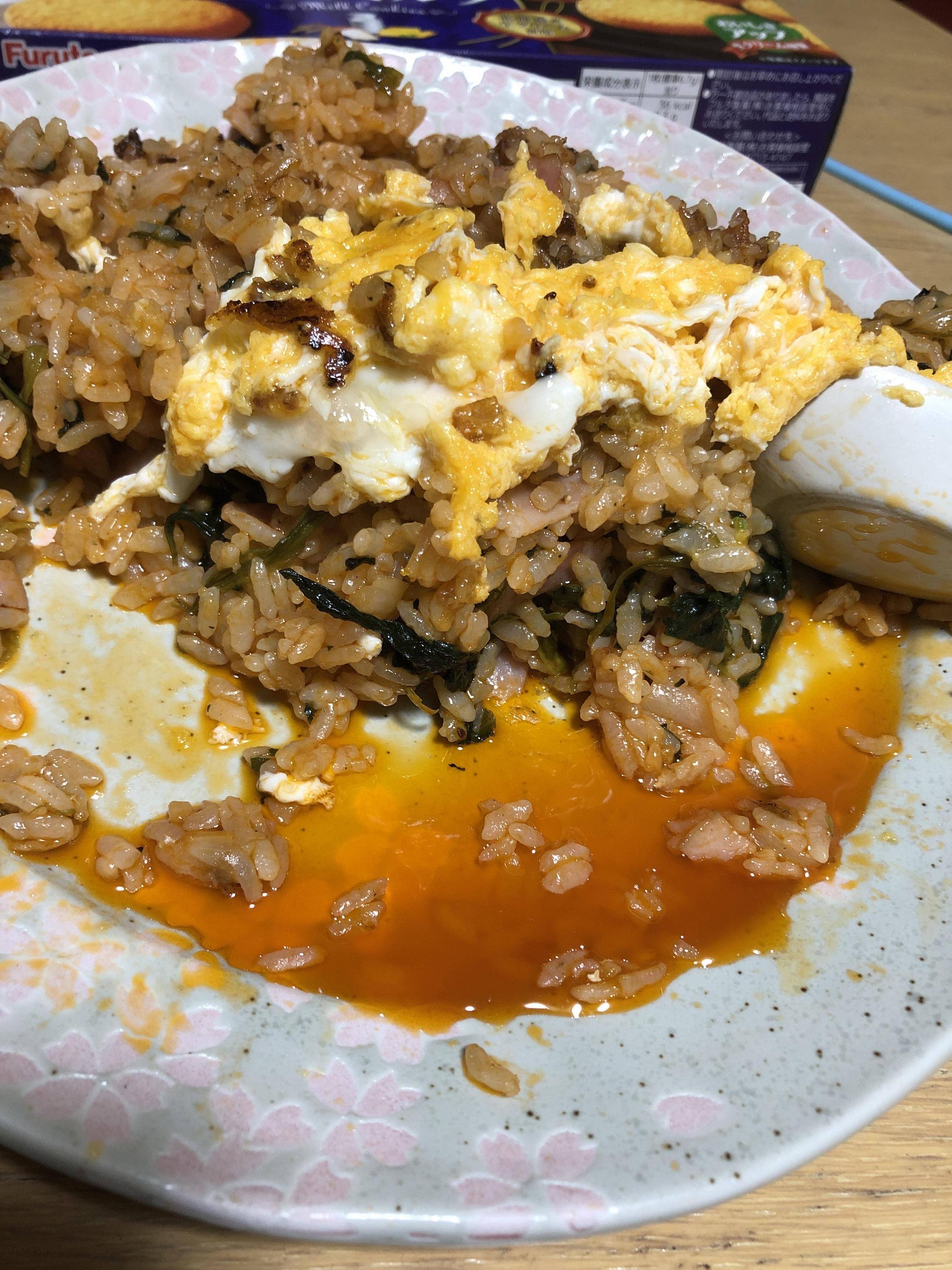 豚キムチに卵乗せたのまぁ美味そうやん、て思ったらオムライスww