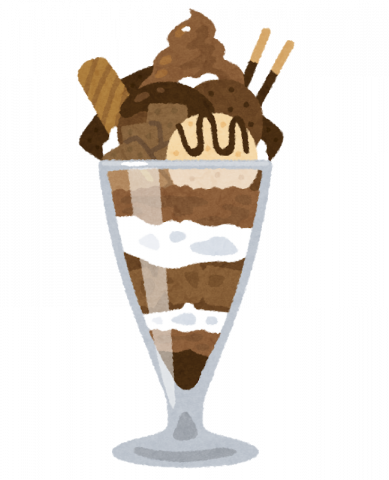 でぶワイ、パフェにはホイップクリームとチョコソースとアイスだけでいいと思う人。果物はバナナ以外いらん。缶詰チェリーも可