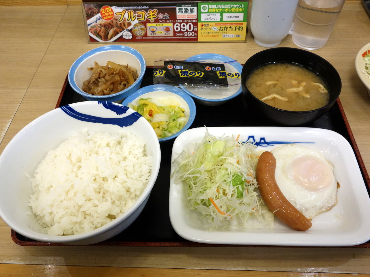 週2日は松屋でソーセージエッグに牛小鉢、何だろ飽きないんだよね