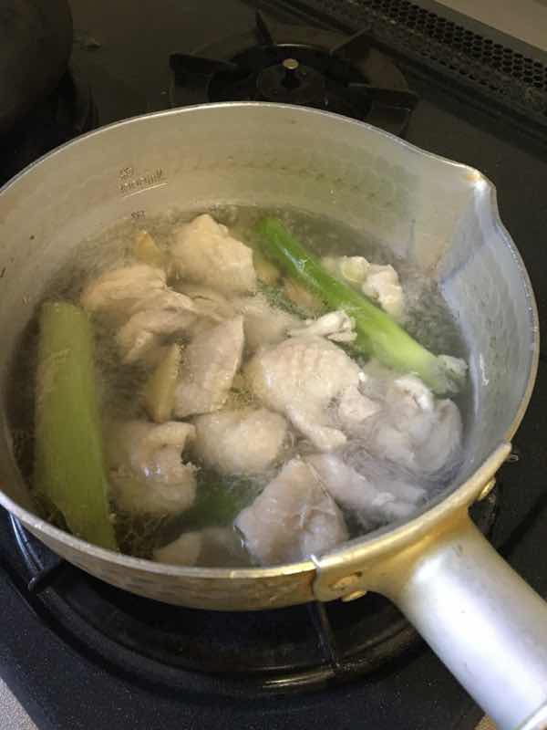 半分は茹でて鶏皮ポン酢
