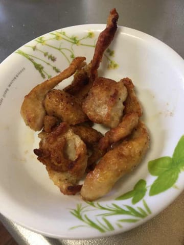 ワイもさっき鶏皮の唐揚げ買ってきたで