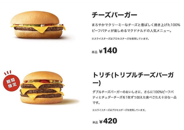 普通のハンバーガーが60円でチーズが乗ったら140円もするんか