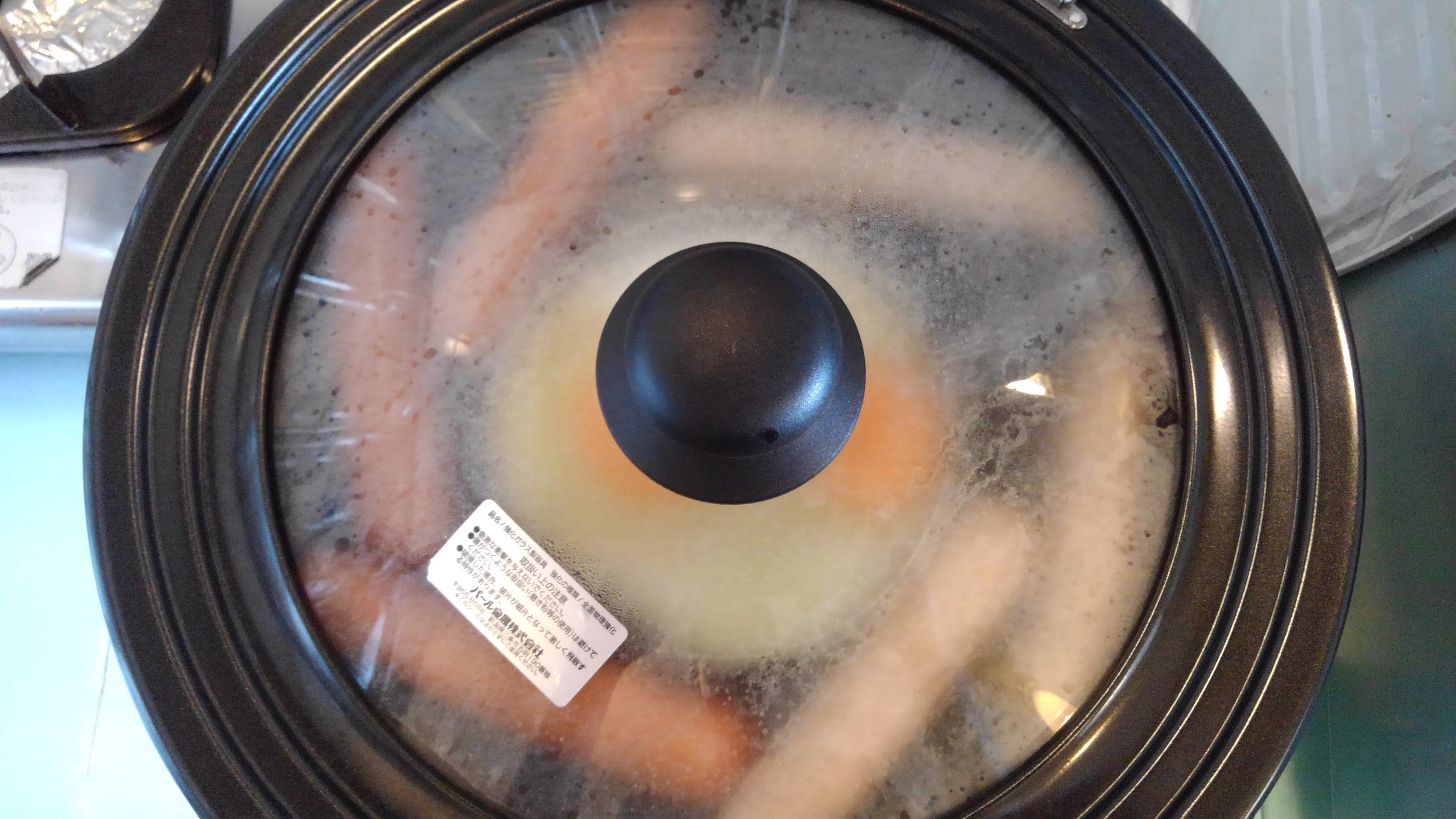 蓋開けて目玉焼きを取り出してウインナーを数分転がす