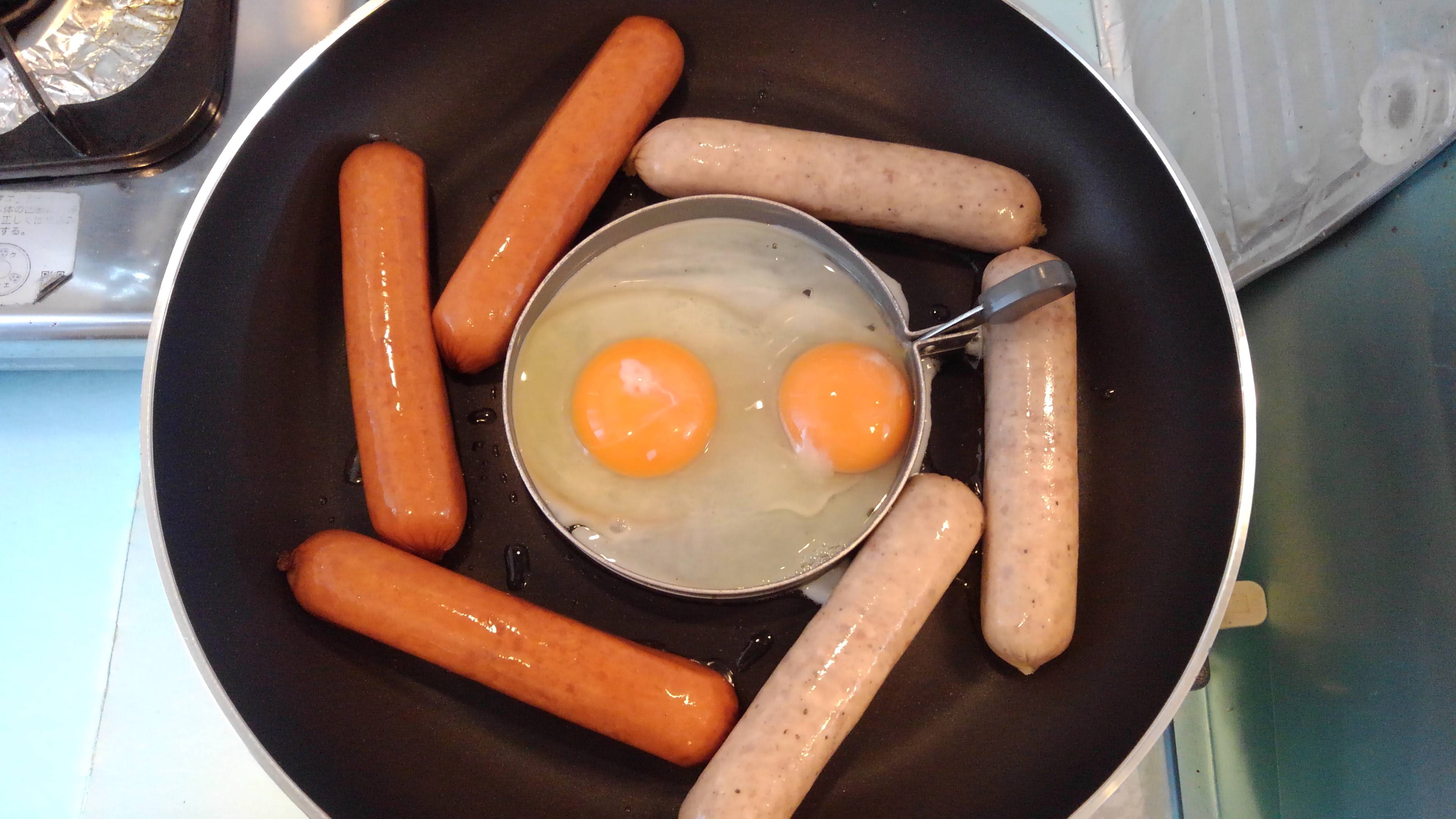 ウインナーは切って卵と混ぜて焼けばえて 目玉焼きは諦めろ