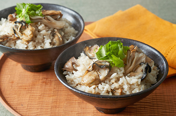 生は夏の岩牡蠣。冬は炊き込みご飯(出汁と軽く煮た煮汁で炊いて身は炊き上がってから入れる)。キャベツと味噌マヨ炒め。チャウダースープ。
