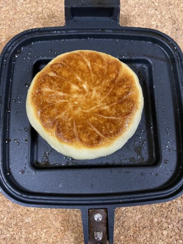 軽く水かけてレンチンしたあとホットサンドメーカーで焼くとおいしいよ
