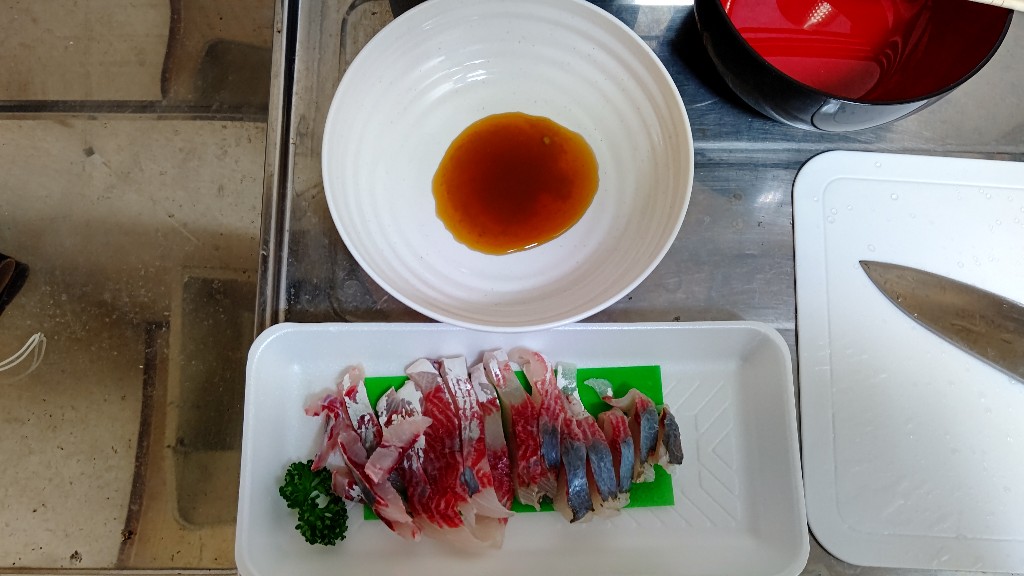 すりごまと醤油で軽くヅケにしたり、薬味醤油にマヨネーズたっぷりかけて食べたりもいい感じ