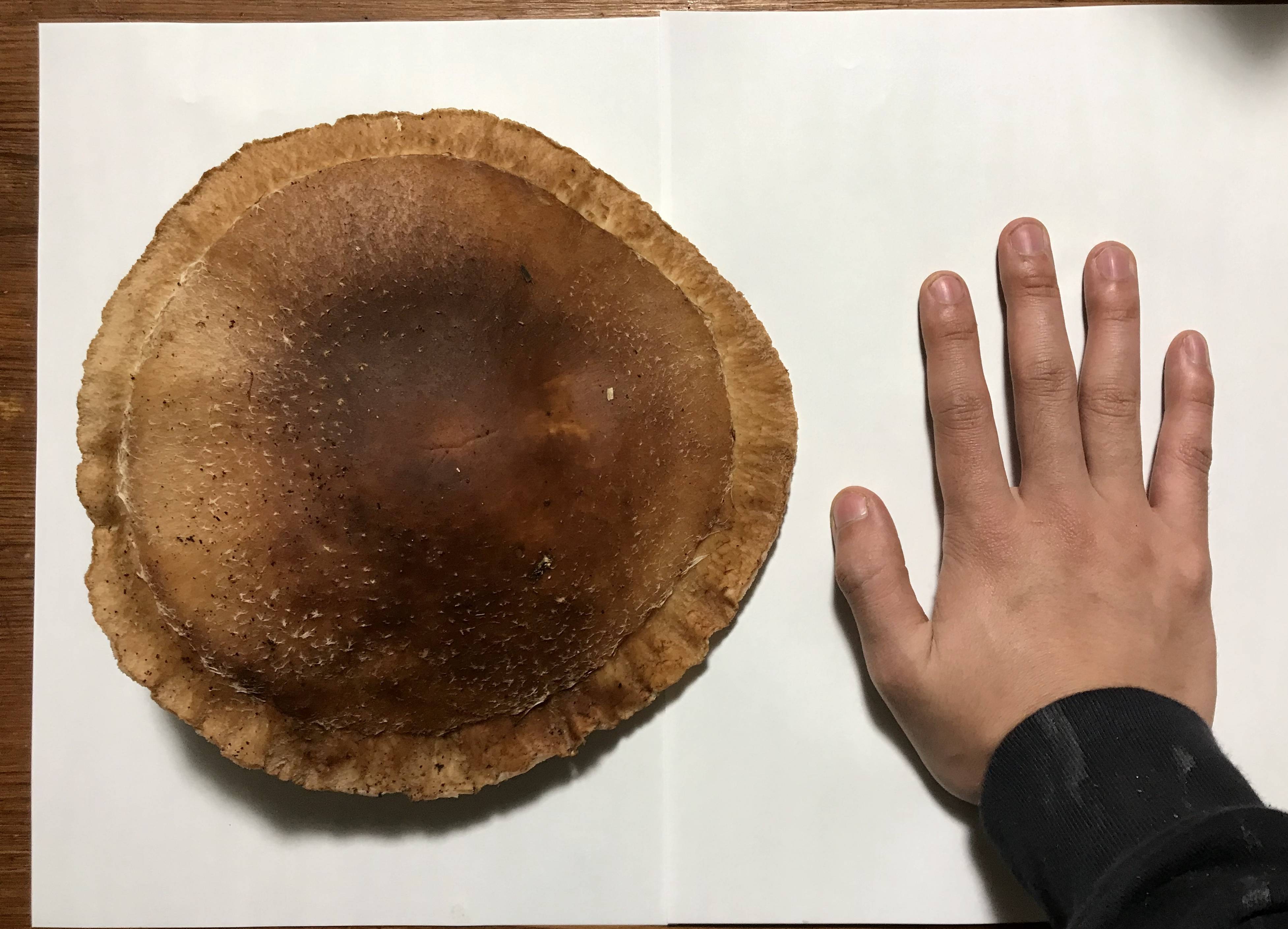 【画像】ワイ、とんでもないサイズのしいたけを収穫してしまう