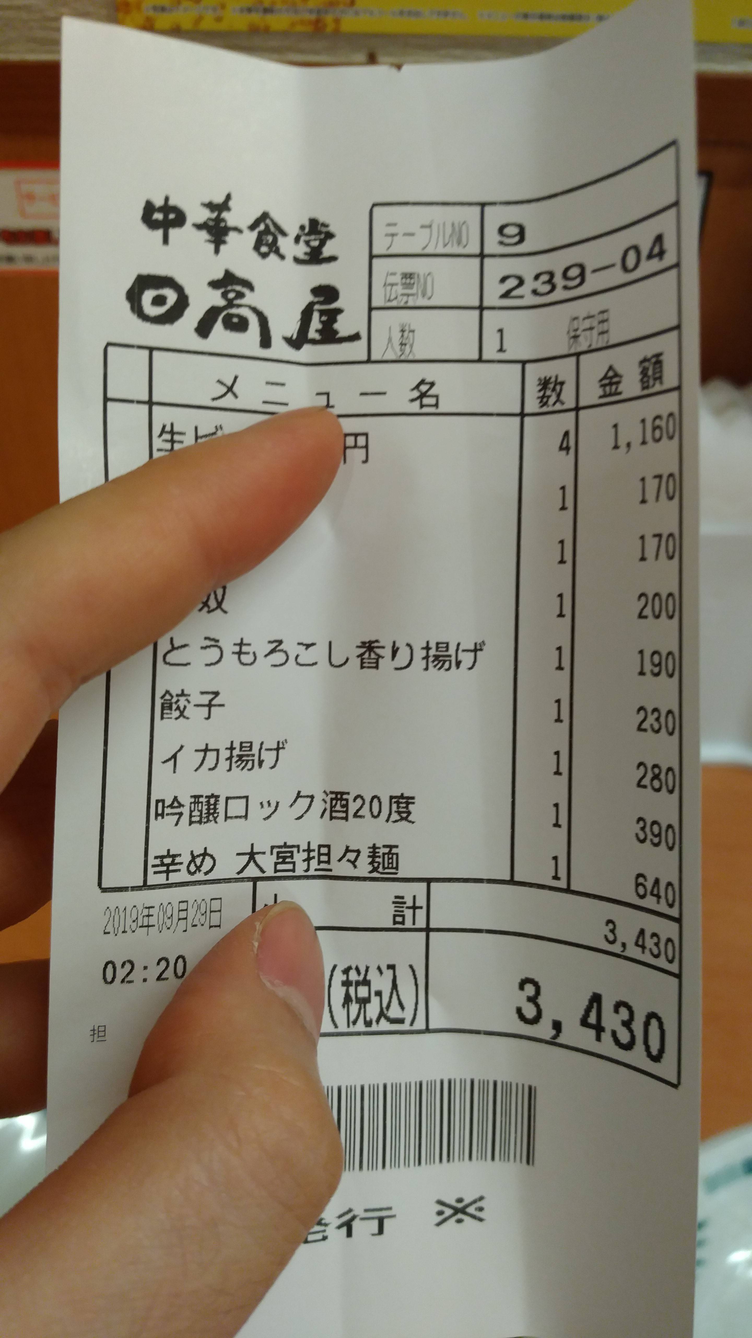 日高屋で豪遊出来るな