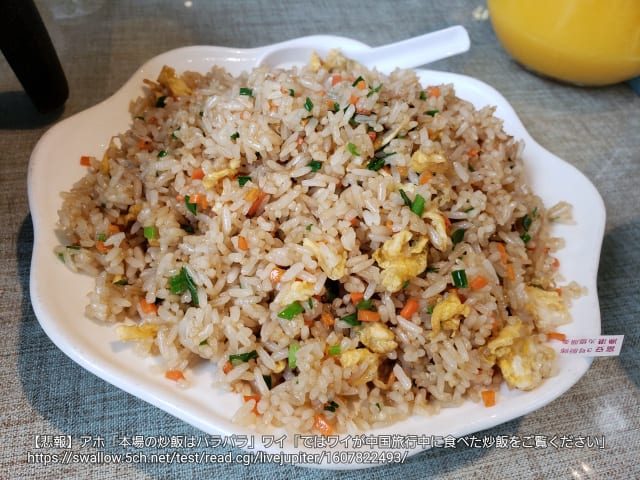 【悲報】アホ「本場の炒飯はパラパラ」ワイ「ではワイが中国旅行中に食べた炒飯をご覧ください」