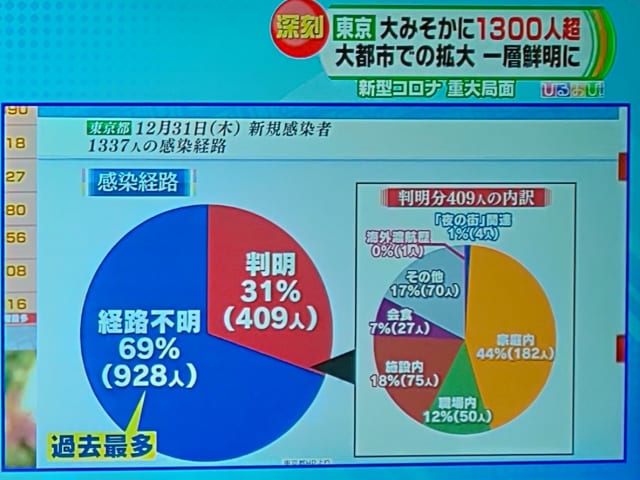 「感染経路不明」にカウントされてる感染者の大部分は、「いつのどの会食で感染したが特定できない」というだけで、会食で感染しているのはほぼ間違いないと感染経路の調査をしている保健所職員がTVのインタビューで話してたよ