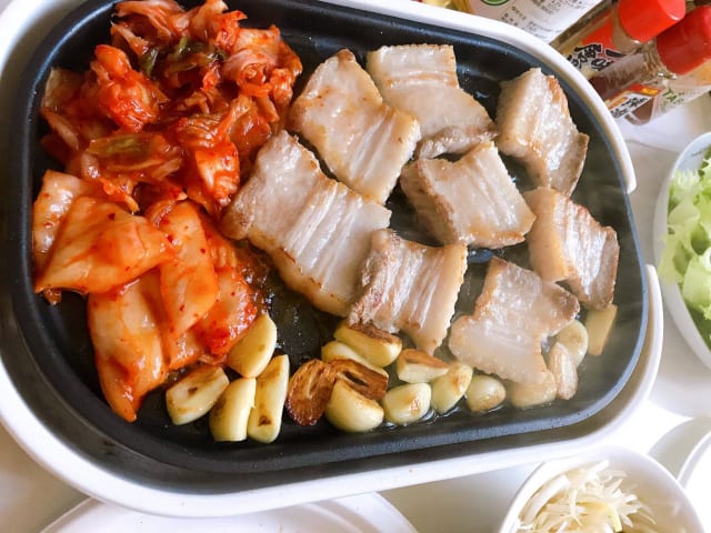 サムギョプサルは嫌い。油だらけで無理。しかもニンニク焼きデフォで付いてるの引く。おいしいんだろうけど。