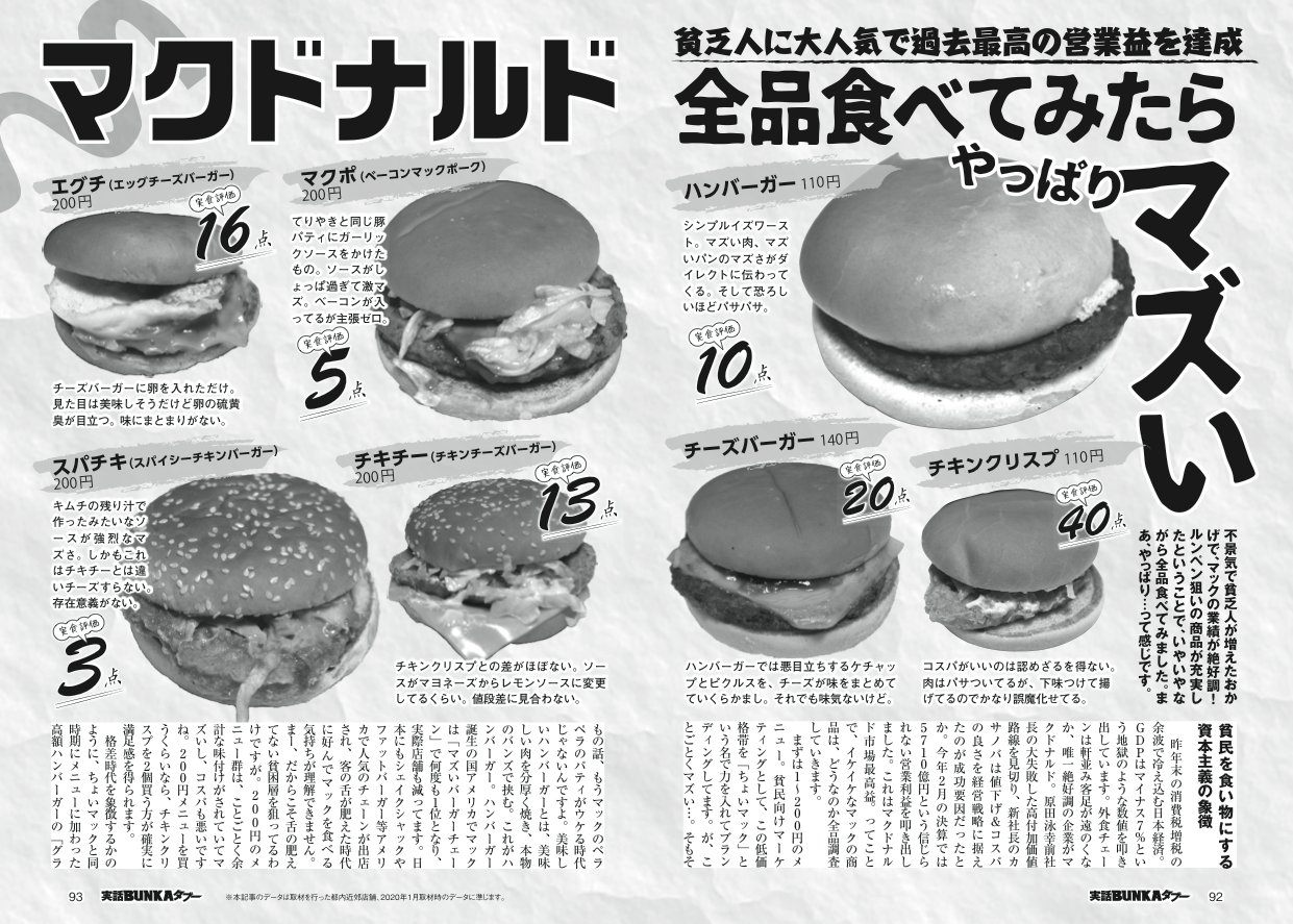 底辺貧民の味方マクドナルドにも厳しい評論