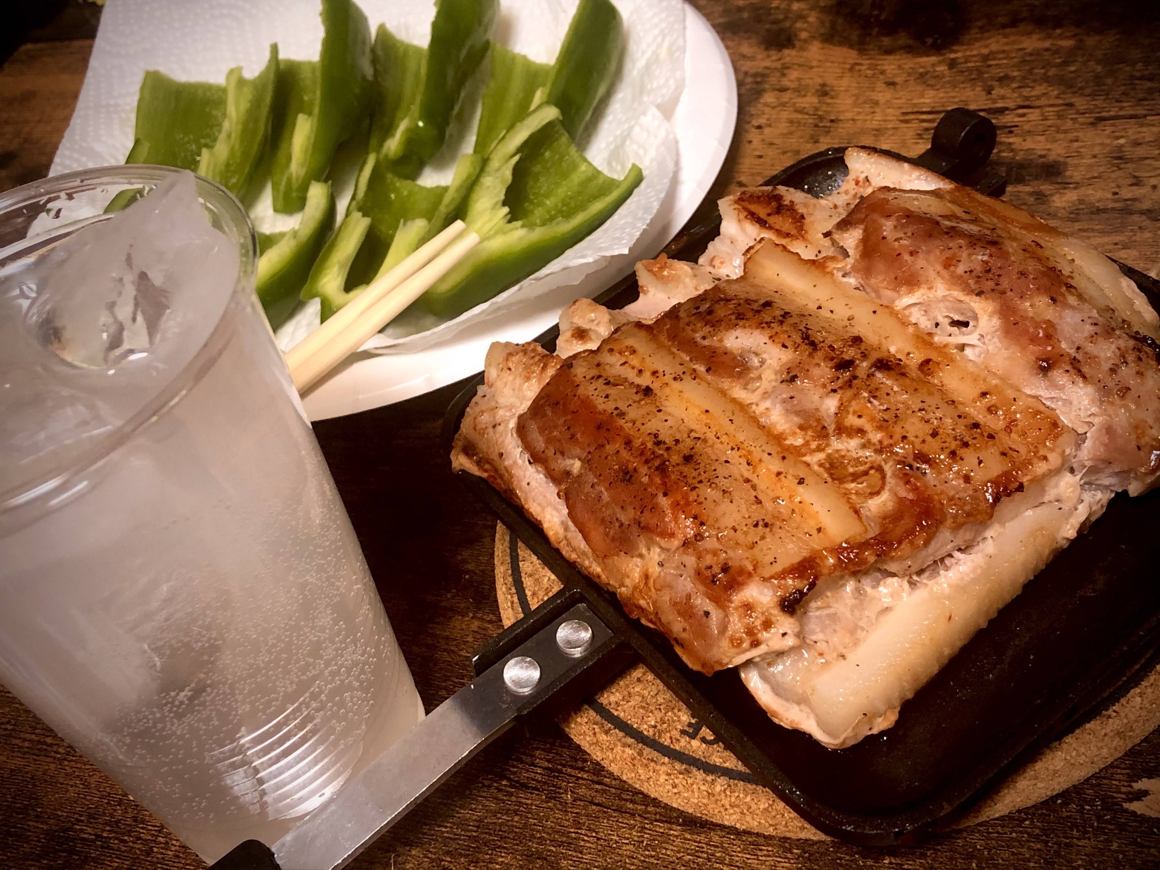 豚バラブロック(黒瀬スパイスで味付け)×ピーマン×ハイサワー(´・ω・`)