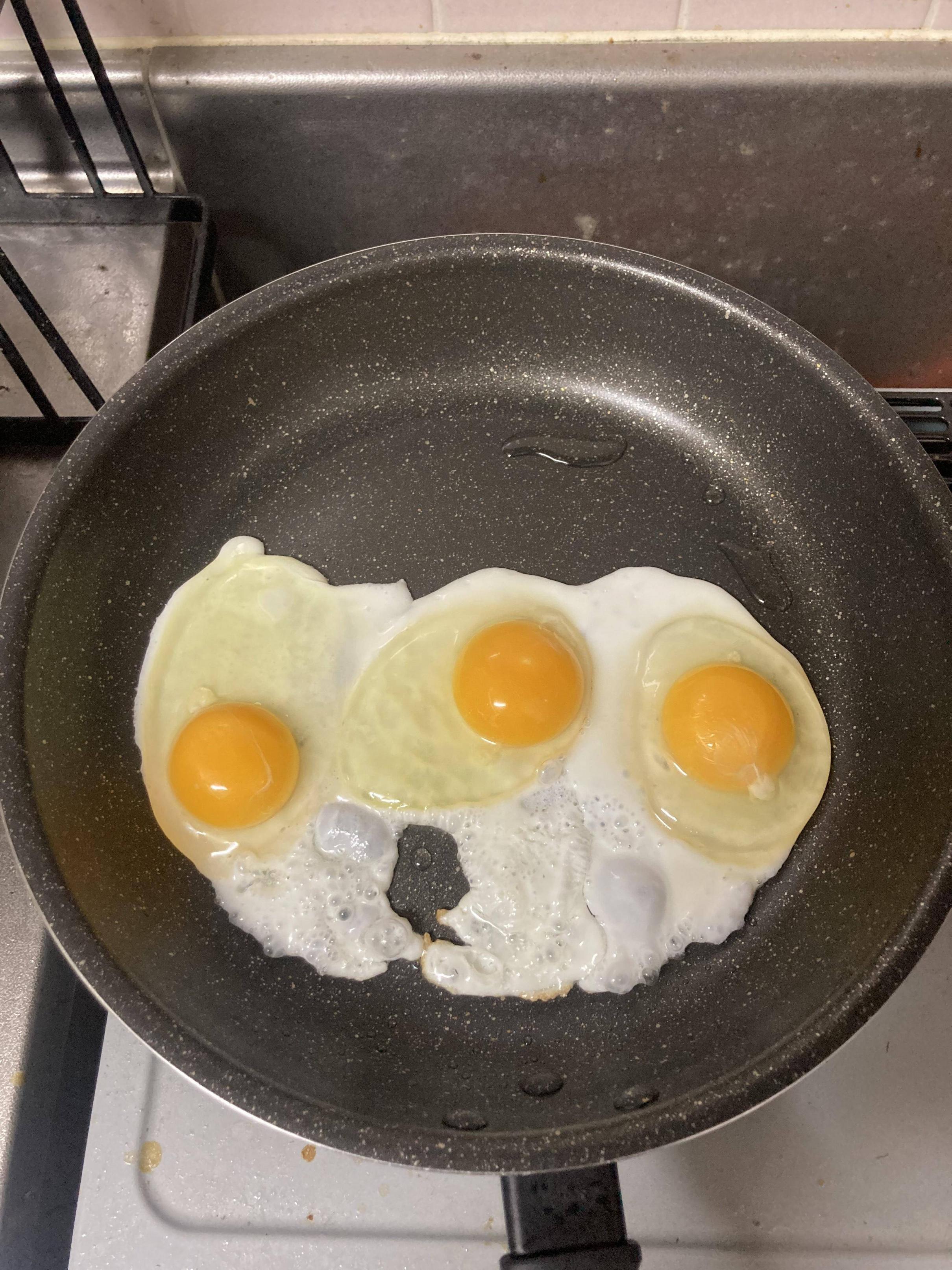 卵焼き作ろとしたらこべりついてスクランブルエッグになったんやけど
