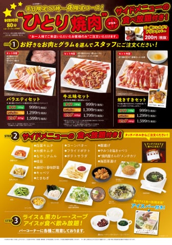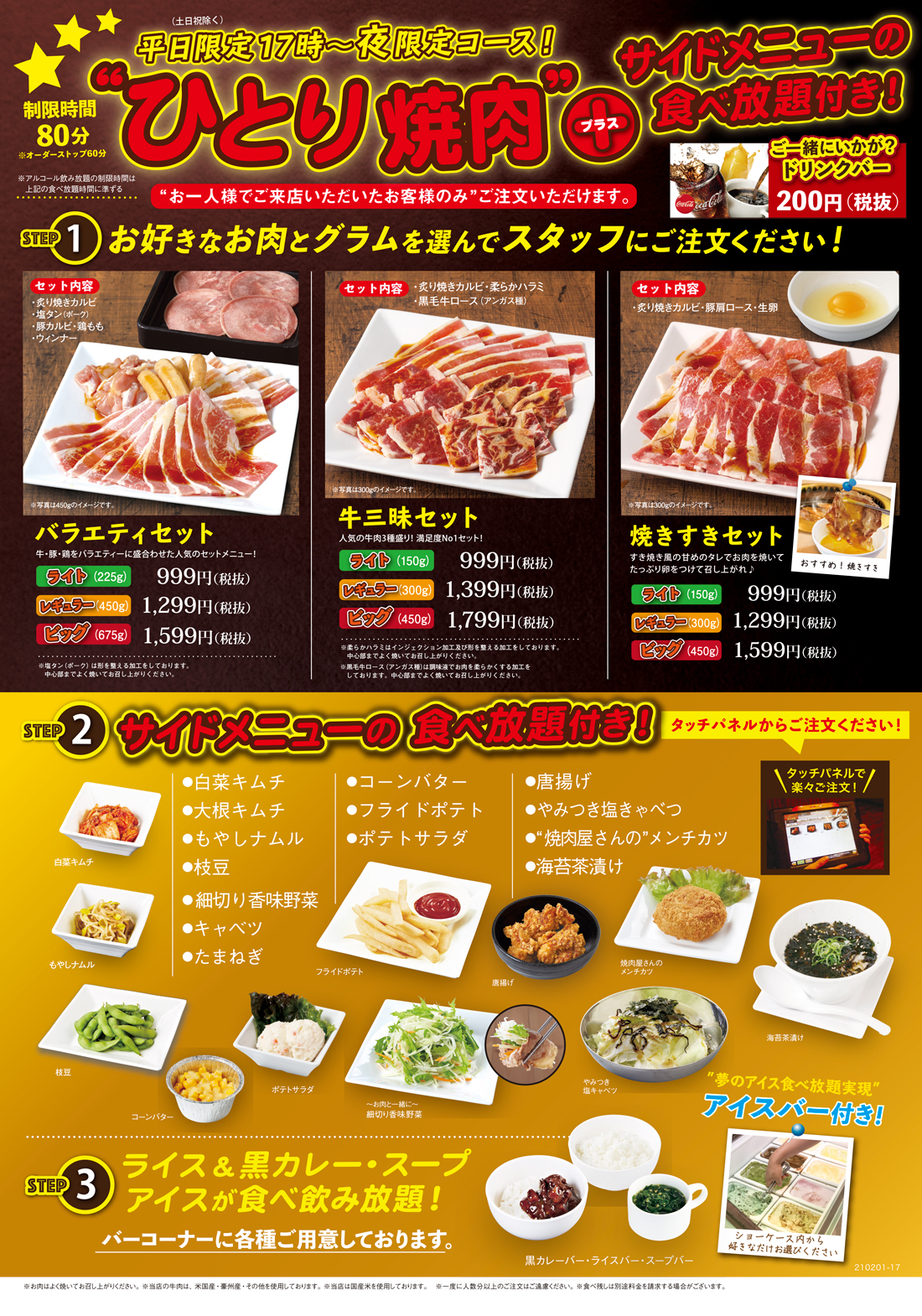 実質は999円80分でライス(一合70円)、サラダ、メンチカツ(1個100円)、からあげ(4個200円)、アイス(100円)