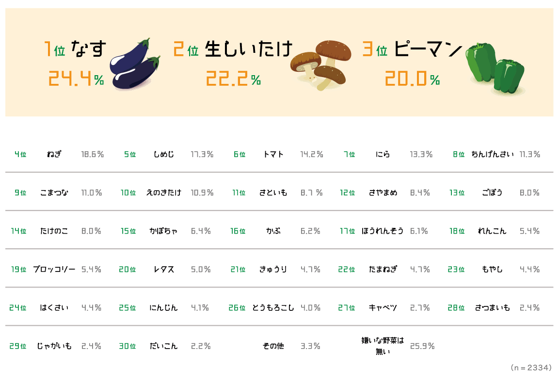 むしろ、3割弱は全く嫌いな野菜が無いのかよ