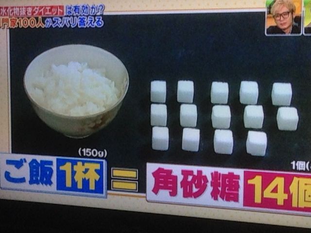 白米茶碗一杯分の糖質を砂糖で取ろうと思ったら角砂糖14個とかになるわけや