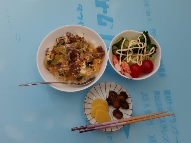 汁物に多品目の野菜を少しづつ打ち込んで、それ以外は炭水化物とタンパク質とれば良いかなって。