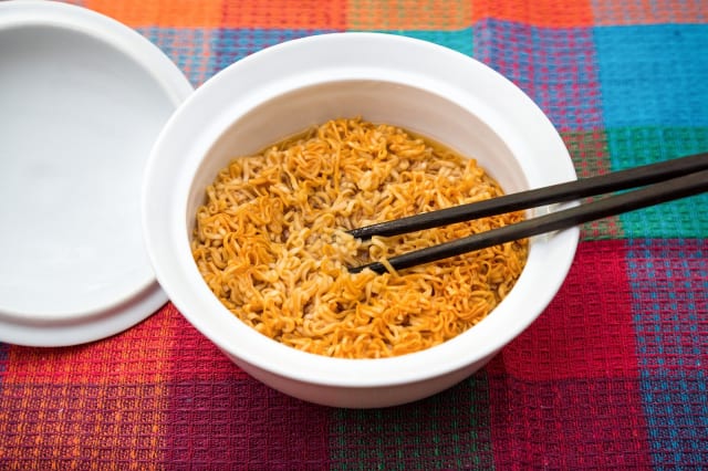 普通のインスタントラーメンの麺だと茹でないとダメだけど、チキンラーメンの麺ならお湯に浸ければ良いし、味も付いてないからスープが濃くなることもない。