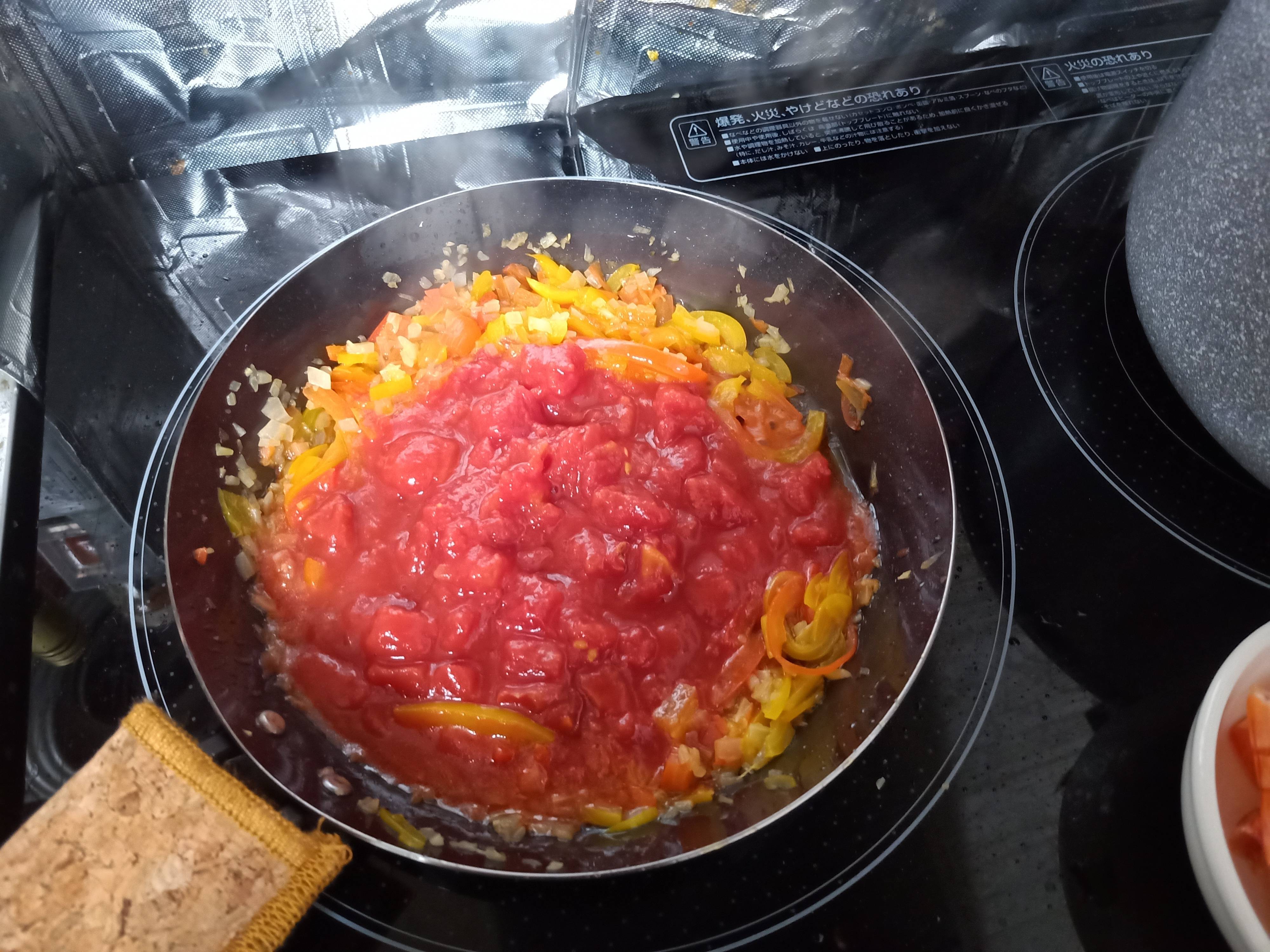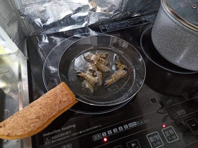 タイ米(長粒米) でパエリアを炊いてる(笑)