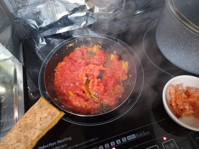汁気がなくなったあともおこげが出来るまでしばらくほったらかしにします