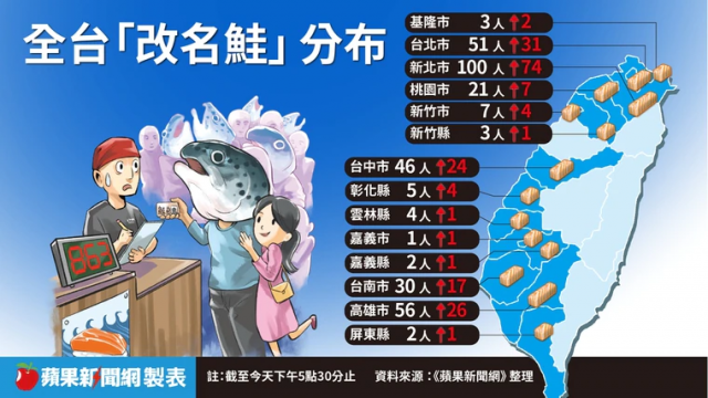 「台湾の鮭は私だけ!」というセリフのつけた鮭の画像を添え、数を数え間違えると、名前がずっと「鮭魚」のままになってしまう恐れもあるとした。
