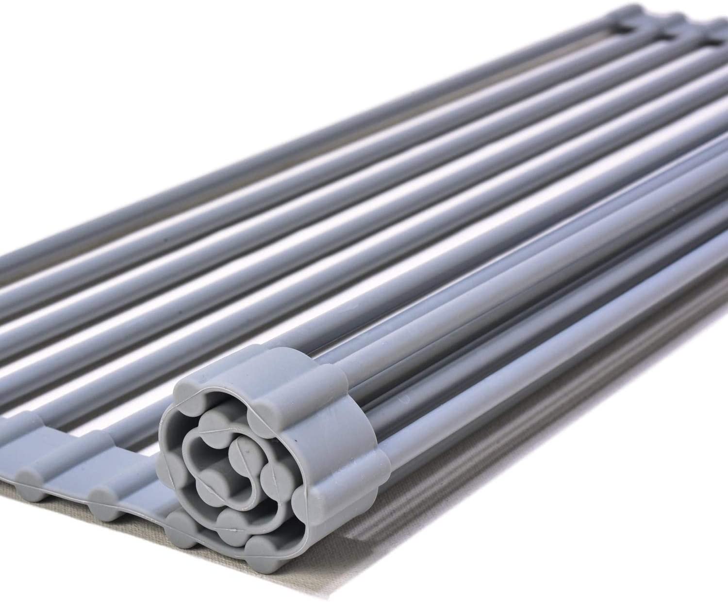 水切りラック 折りたたみ 水切り [Latuna] くるくるスッキリラック 抗菌 コンパクト 錆びない シリコン シンク 省スペース 食器 プレート ワイド 乾燥 (52x33cm)