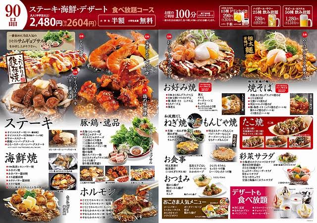 ほとんどのお好み焼き食べ放題は鉄板焼きメニューもある