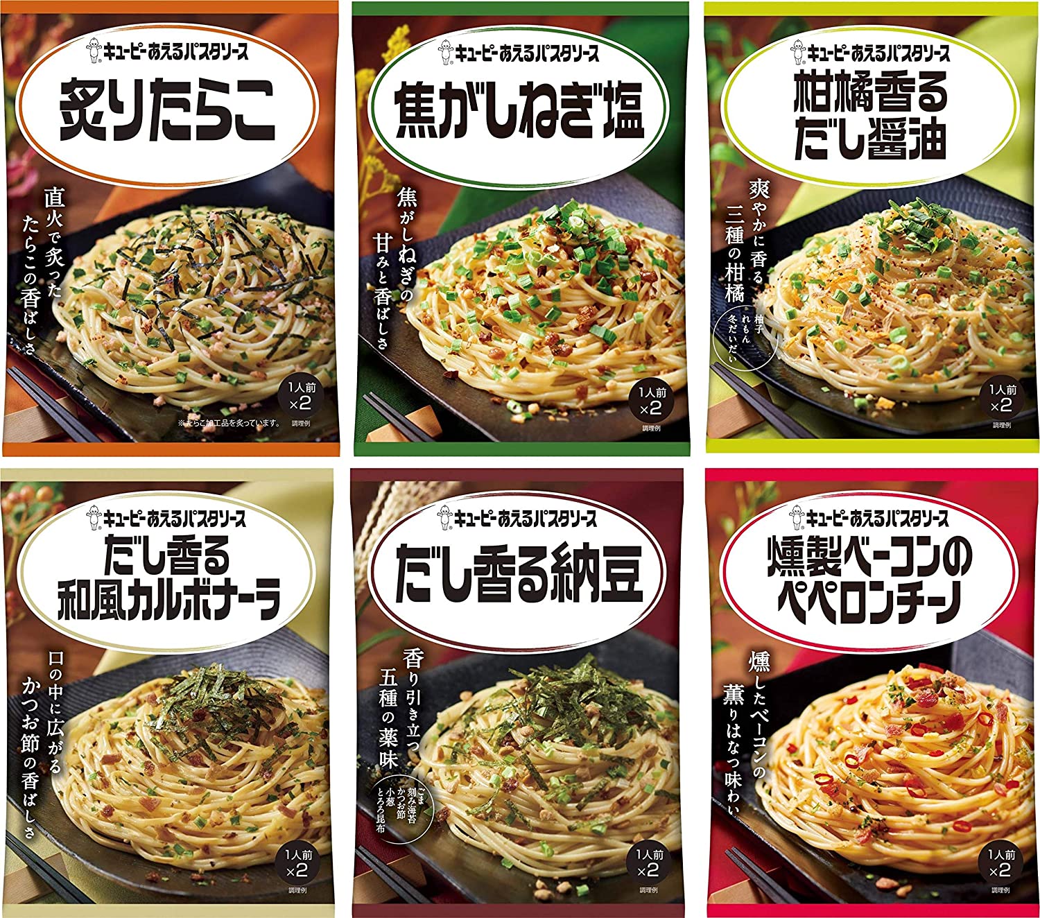 キユーピー あえるパスタソース 香りを楽しむバラエティ 6種(各2食入) (炙りたらこ、だし香る納豆、焦がしねぎ塩、だし香る和風カルボナーラ、燻製ベーコンのペペロンチーノ、柑橘香るだし醤油)