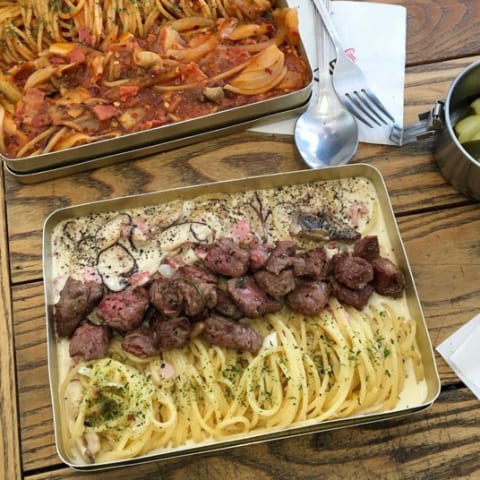 こんな器使うならパスタよりのり弁とかキャンプ飯提供するほうがウケるんじゃね、とか思ってしまうのはやっぱ感覚が違うからなんだろうな