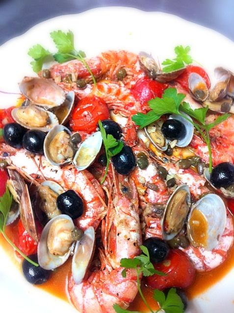 海老、アサリ、ケッパー、トマト、オリーブ、イタリアンパセリ使った中華料理ってなんだよw