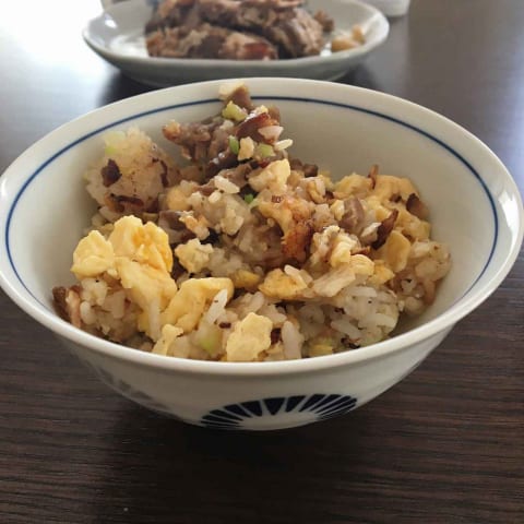 テフロンフライパンを傷めず、よそんちで普通にある調理器具のみを使ったチャーハンができるといいなと思っている。