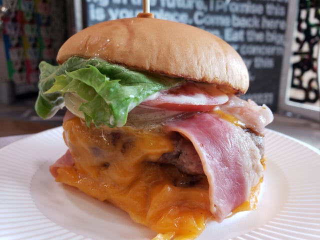 代々木駅近くの佐世保バーガー、食パン使ってて笑ったな〜