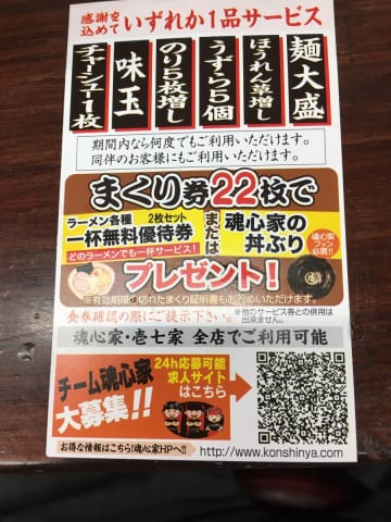 22枚貯めたらラーメン2杯無料券かどんぶりプレゼント