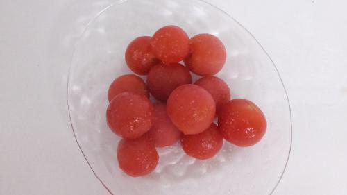 氷トマトを常備してる。そのまま食べてもいいし氷トマトチューハイにしてもいいし。冷やしパスタにも使える。