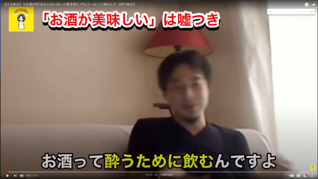ひろゆき「お酒はアルコールを摂取するために飲むもの。『お酒がおいしい』という人は嘘つき。」